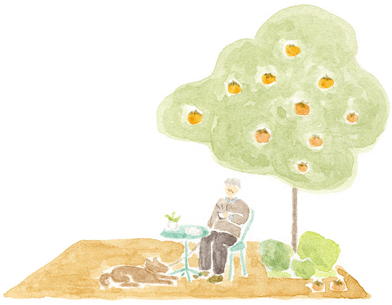 ただボーッとしたい人、柿の木の下のテラスに座って、コーヒー片手に空を見上げてみてはいかがですか?何でもありです、一度カフェに来てみてください。 -